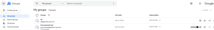 To make sure the settings are correct for our manager to start using an email, go to Google Groups and choose the created Group from the list